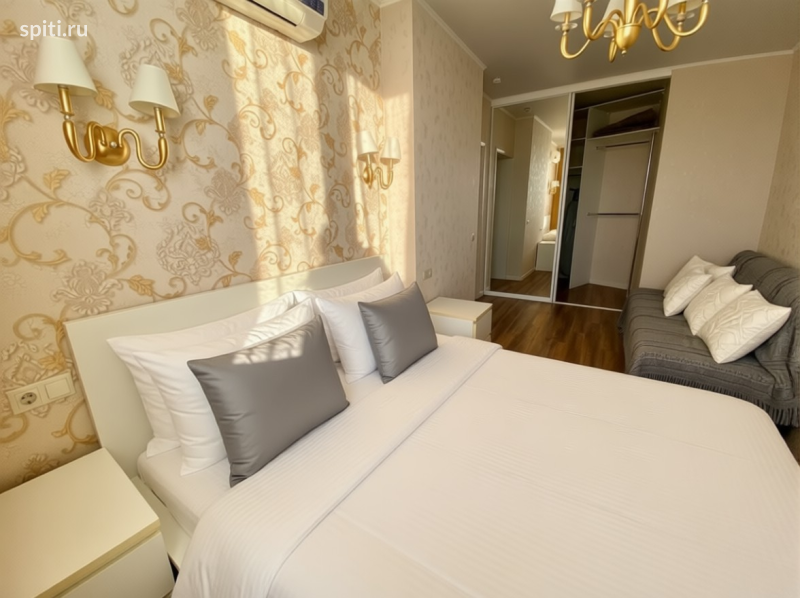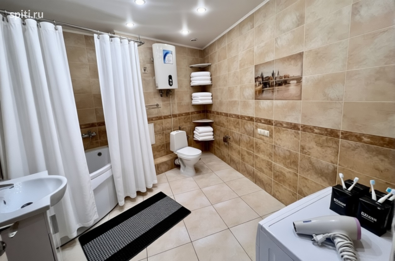 21 этаж ( самый лучший вид - озеро Кабан, река Волга и Казанка) Адрес: Метро Площадь Тукая, ул. Щербаковский переулок,7 Апартаменты находятся по адресу: Метро Площадь Тукая, ул. Щербаковский переулок, 7. Расположены в непосредственной близости от центральных пешеходных улиц Казани — улицы Баумана и Петербургской, а также станции метро Площадь Тукая. Этот адрес известен уникальным небоскрёбом треугольной формы, известным как Clever House, одним из символов современного облика Казани. Панорамный вид Панорамный вид из окон впечатляет своей красотой: открывающиеся виды на знаменитое озеро Кабан, реку Волгу и Казанку делают пребывание в этих апартаментах незабываемым опытом. Особенности комплекса Комплекс оснащен всеми необходимыми элементами комфорта и безопасности: - Охраняемая наземная парковка. - Пропускная система на территорию. - Консьерж-сервис. Внутреннее пространство Площадь апартаментов составляет 80 квадратных метров, что позволяет комфортно разместиться большой семье или группе друзей. Планировка и удобство размещения: - Первая комната оснащена двуспальной кроватью и раскладным диваном-кроватью. - Вторая комната совмещена с кухней и предлагает дополнительное спальное место в виде двуспального дивана. - Общая вместимость — до шести человек. Санитарные удобства: - Большая угловая ванная комната обеспечивает максимальный комфорт для всех жильцов. Дополнительные удобства: - Плоскоэкранный телевизор со Smart TV в каждой комнате. - Полностью оборудованная кухня с бытовой техникой (микроволновая печь, электрический чайник, плита, духовка, холодильник, посуда). - Бесплатный доступ к высокоскоростному интернету (Wi-Fi). - Наличие стиральной машины-автомат, сушилки для белья, утюга и гладильной доски. - Два кондиционера в разных комнатах. Бронирование напрямую по датам на www.apartkazan.com
