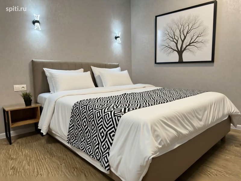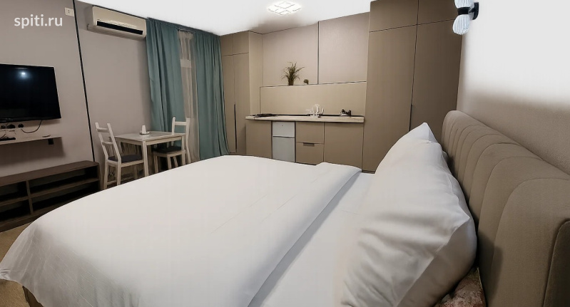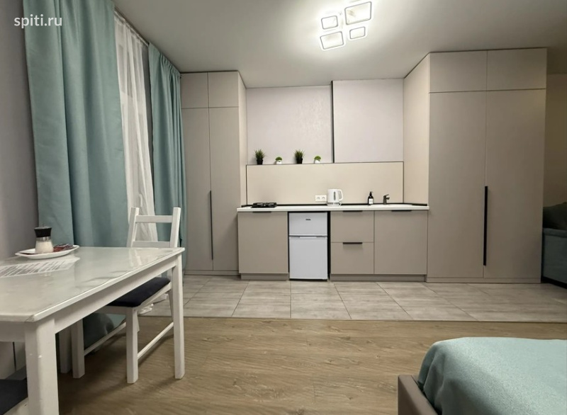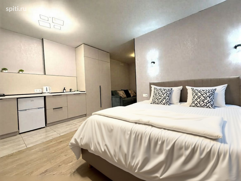 4 этаж ( корпус с лифтом) Представленные апартаменты в Казани — идеальный выбор для комфортного отдыха и изучения культурных достопримечательностей города. Располагаются они в историческом центре, неподалёку от знаменитых улиц и значимых памятников, таких как улица Баумана, Казанский кремль и мечеть Кул Шариф. Благодаря удачному расположению, гости могут быстро дойти пешком до основных туристических точек и ощутить атмосферу старинного города. Особенности размещения Апартаменты представляют собой уютную однокомнатную студию, рассчитанную на пребывание до четырёх гостей одновременно. Пространство обустроено функционально и удобно: Интерьер и мебель - Основной зоной отдыха является спальня с удобной двуспальной кроватью шириной 160 см, оснащённой ортопедическим матрасом., а так же комфортабельный раскладной диван-кровать (150 см), служащий дополнительным местом для сна. Комфорт проживания - В распоряжении гостей современная кухонная техника и вся необходимая посуда, позволяющая свободно готовить пищу дома. - Каждый гость получает индивидуальные комплекты полотенец и постельных принадлежностей( из расчета 2+2) , а также необходимые гигиенические средства: шампунь, гель для душа, жидкое мыло. - Обеспечивается порядок благодаря наличию стиральной машины, гладильной доски и утюга. Услуги и дополнительные возможности - Апартаменты оснащены высокоскоростным интернетом, предоставляющим свободный доступ к онлайн-ресурсам. - Возможна заказанная уборка, замена постельного белья и предоставления набора детских аксессуаров (кроватки, кресла для кормёжки, детские горшки). Безопасность и удобство инфраструктуры Территория комплекса оборудована современной системой видеонаблюдения , шлагбаум и ворота, что гарантирует безопасность проживающим. На придомовых территориях установлены игровые площадки для детей, а автовладельцам доступна охраняемая парковочная площадка.
