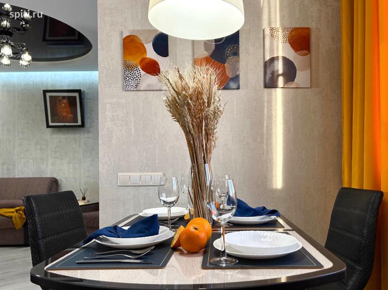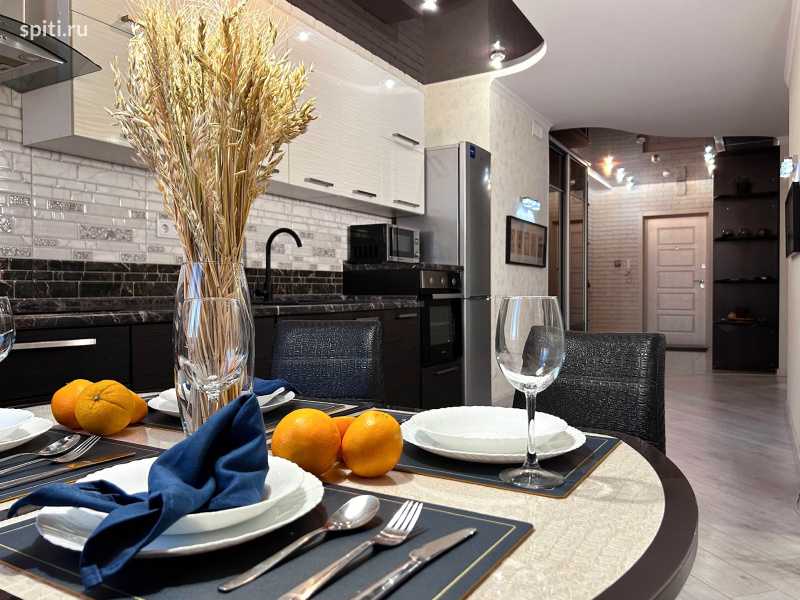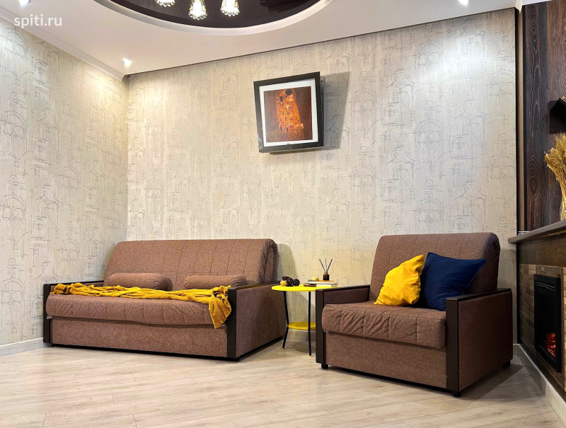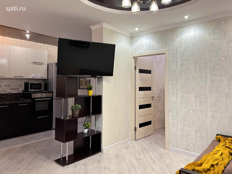 Хотели поделиться своим впечатлением, квартира уютная просторная, интерьер и стиль продуманны. Мелочи в виде, хорошего фена, геля для душа, шампуня, зубной щетки и пасты - продуманы. Также бутилированная вода, чай, кофе, сахар. Очень приятно что есть такие мелочи. В квартире было чисто, уютно. До центра 5 минут. Единственное что дом на горе, это не много увеличивало время подъема. Территория огорожена, есть детская площадка. Нам понравилось, посоветовали друзьям.